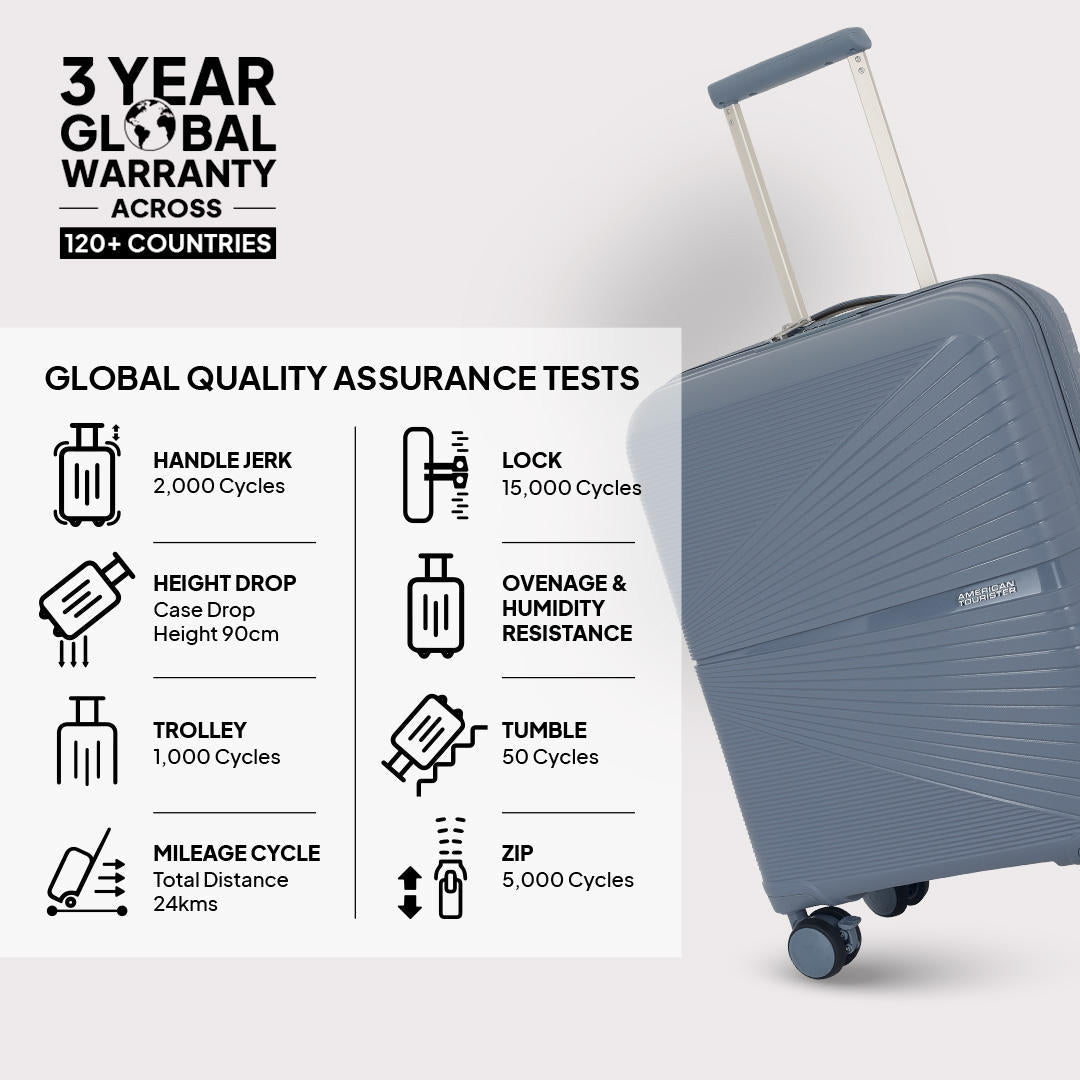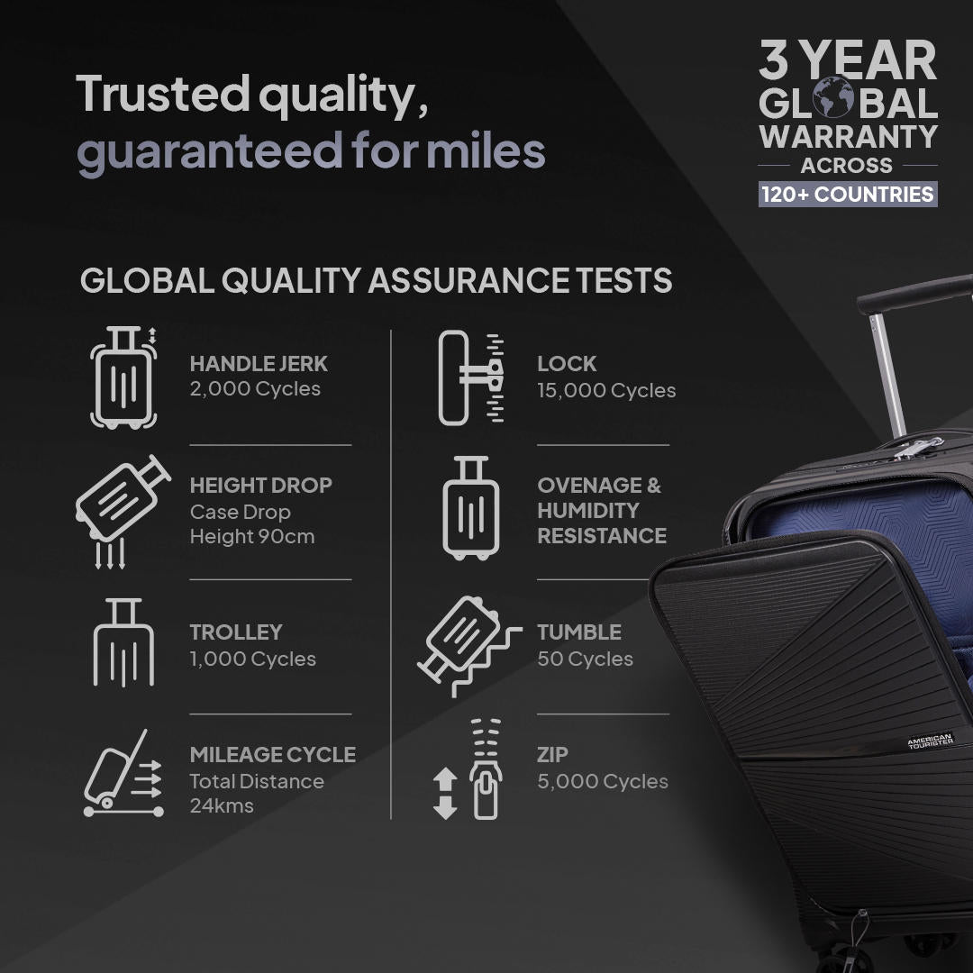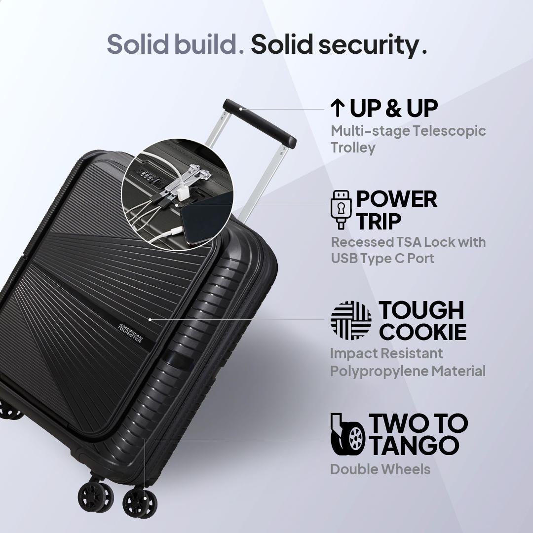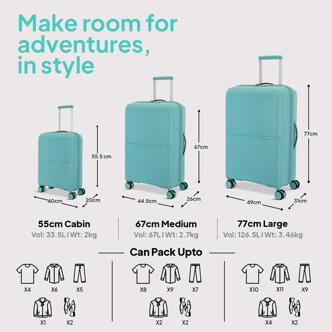 The revolutionary Airconic, our global bestseller is a superlight trolley bag for your fly-high travel tours! Would you believe that the large sized spinner in this series weighs only 3.2kg making it the most lightweight luggage set for complete travel ease. The slick design and superior finish in polypropylene looks brilliant in black, grey and formula red. The Pack Pro interiors with complimentary packing cubes ensure good luggage space along with dual packing straps for convenient packing. This iconic hardside luggage comes with a waterproof zipper, double wheels for swift & seamless movement as well as a complimentary luggage cover!